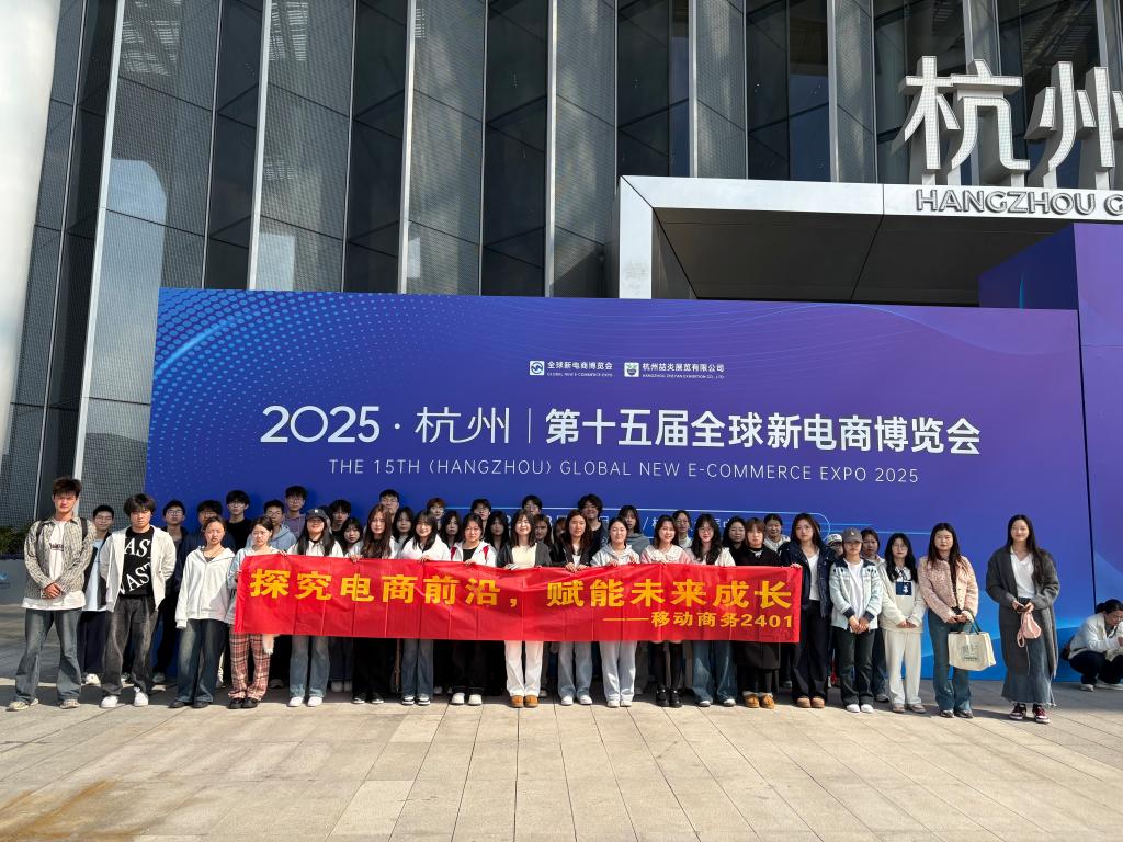 备受瞩目的2025年全球电商博览会在杭州大会展中心盛大举行,本次博览会以“新数字、新经济、新电商”为主题,展示电商行业新趋势、服务新模式、流量新入口,汇聚了全球数据领域的精英企业和前沿技术。近日,移动商务专业2401班全体同学来到杭州大会展中心,深入了解全球电商行业的最新动态与发展趋势。