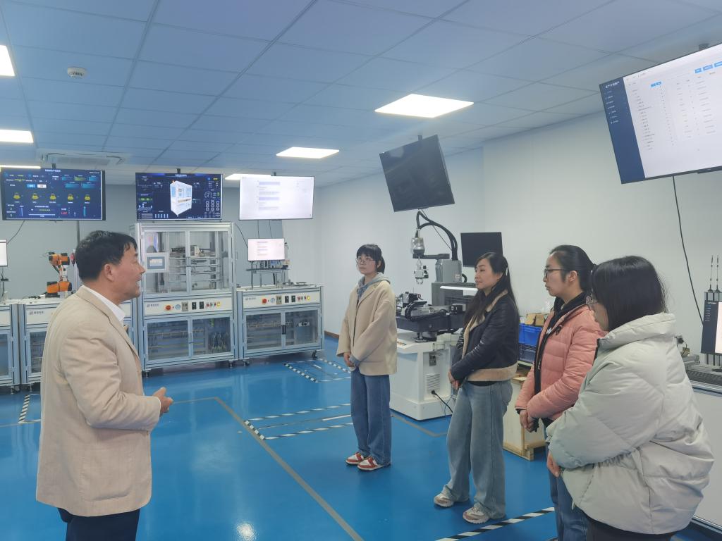 在企业负责人的带领下,学院一行参观了基于工业互联网的智能制造实验室、数字孪生技术展示区以及“打工机器人”等实验实训系列产品。这些先进的技术成果不仅展现了智珵科技在智能制造领域的深厚积累,也为学院师生带来了前沿的行业认知。
