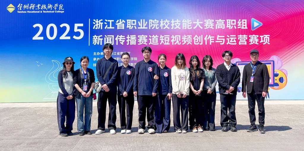 3月23日,2025年浙江省高职院校职业技能大赛“短视频创作与运营”赛项在台州职业学院圆满收官。全省48所高职院校93支队伍的371名精英选手同台竞技,我校艺术设计学院参赛团队(高源、洪一航、蔡冰洁、刘妙戈)凭借精湛技能勇夺金奖!指导老师范铮、陆叶、王潇仪、陈姗姗全力护航,助力团队在激烈角逐中脱颖而出。