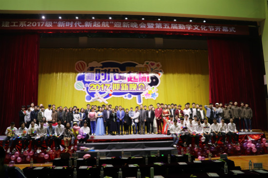 在全国上下全面贯彻学习党的十九大会议精神,认真践行党的新时代路线,全面深化改革之际,建工系迎来了新时代第一场文化盛宴,在新任团总支书记和系团学干部们的精心谋划和酝酿下,建工系2017级迎新晚会暨第五届勤学文化节,于11月6日晚在学院文体中心拉开了帷幕。学院副院长吴宏平、建工系全体领导与师生、各系团总支书记、学生家长代表莅临晚会。此次文化活动的主题分别为“新时代,新启航”,“明勤学之志,承文化之魂”。