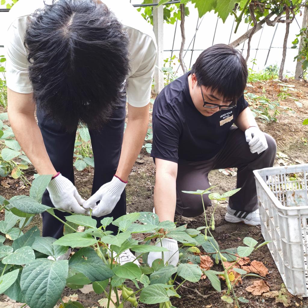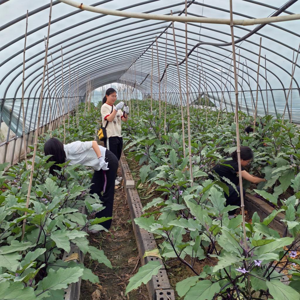 高温笼罩的蔬菜大棚宛如蒸笼,成熟的黄瓜垂挂藤架,紫亮的茄子隐现叶间,青翠的辣椒缀满枝头,饱满的毛豆荚亟待采收。时值仲夏,室外气温高达35摄氏度,大棚内的温度则更高,但这丝毫没有阻挡同学们的热情。在后勤职工的指导和学院教师的带领下,同学们分组协作,深入田间地头。他们弯下腰,仔细辨认、小心翼翼地采摘着黄瓜、茄子、毛豆和辣椒。汗水很快浸湿了衣衫,豆大的汗珠顺着同学们的脸颊不断滴落,洇入脚下的泥土。采摘、搬运、装筐……每一个环节都伴随着切实的体力付出。高温下的劳作,让同学们真切体会到了“汗滴禾下土”的不易,也磨砺了他们吃苦耐劳的意志品质。