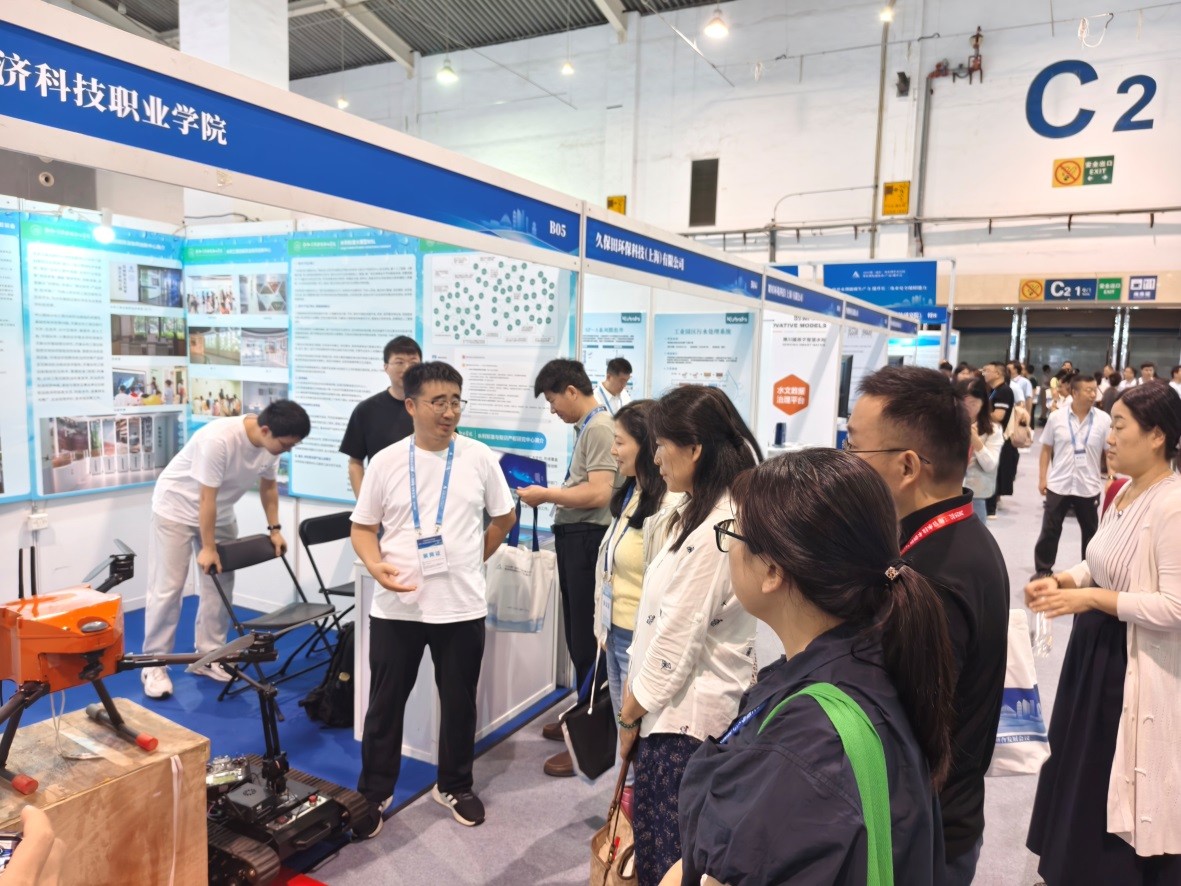 学校组织科研团队积极参会,多项学校自主研发新产品、新技术、新成果在盛会上精彩亮相,吸引了众多行业企业关注。基于深度学习的空地协同堤坝白蚁智能巡检系统,通过创新融合长航程四旋翼无人机、履带机器人、白蚁地表活动特征智能识别软件,实现了堤坝白蚁隐患的高效智能检测;全国首个水利标准大模型,构建了全国水利领域首个全链条知识图谱,实现智能检索、标准查重、辅助编写、意见分析等功能,赋能科研和人才培养;农村地区高浊度饮用水原水处理技术与成套装备,为解决农村安全饮水难题提供了创新方案;轻质非规则形状新型模型沙研发,能够有效模拟侵蚀和淤积过程。这些新技术(新产品),充分展现了我校在水利科研领域的创新实力。