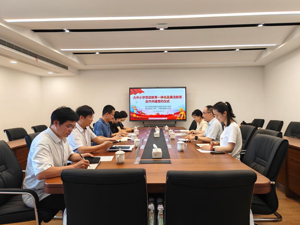 为深入贯彻落实习近平总书记关于思政课建设的重要指示批示精神,推动大中小学思政教育一体化建设,7月2日,学校艺术设计学院联合萧山区钱江学校、萧山区宁围街道钱江社区举行“大中小学思政教育一体化”共建基地签约和授牌仪式,标志着三方在构建“纵向贯通、横向协同”的大思政教育体系上迈出新的一步,为培养担当民族复兴大任的时代新人注入新动能。学校党委委员、副校长姜伟,学院党总支书记金璐、副书记徐玉凤、教师代表王婷,萧山区钱江学校执行校长吴恒,副校长鲁伟锋、魏少锋,萧山区宁围街道钱江社区党总支副书记葛玉婷、总支委员冯国琴等参加。