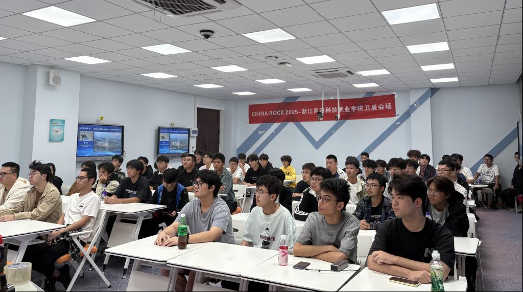 本次学术年会紧扣国家战略需求,以“AI赋能岩石力学与工程”为核心主题,设置了丰富多元的议程内容,涵盖创新技术研发、工程实践案例分享、智能建造发展趋势等关键领域,为岩石力学与工程行业打造了深度交流、协同创新的高端平台。在会场设置中,建工学院积极统筹协调、细致安排,市政工程技术专业部、建筑工程技术专业部、建筑智能化工程技术专业部组织优秀学生集中观看会议现场直播。同学们学习了岩石力学与工程在人工智能时代的最新研究进展、技术突破及创新应用成果,近距离感受行业学术前沿的魅力与发展脉动。