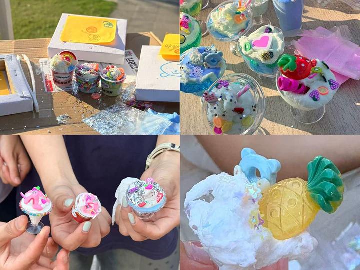 在“揉捏压力,邂逅甜蜜”活动中,同学们尽情塑造各种水晶泥并搭配各具特色的配饰,制造属于自己的冰激凌摆件,将无形的压力转化为具象的艺术创作,在分享成果的过程中体验专注与放松,仿佛邂逅了一场源自内心的甜蜜。