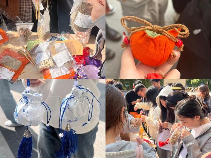 而“秋香寄情,安康暖心”活动将心理关怀与秋日时节巧妙结合,借助“祈福禳灾,趋吉避凶”的美好寓意,以自由手作香囊体验为媒介,寄托对他人与自己的美好祝愿。既传递了温暖与关怀,又提升了同学们的幸福感与归属感,让大家在凉意渐深的秋日里感受到来自校园的浓浓暖意。