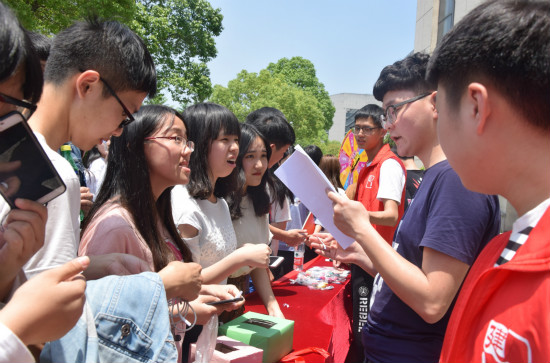 中午,食堂门口排满了前来参加活动的同学,就业服务现场知识竞猜如火如荼的进行,同学们参加活动的心并不受烈日的影响,欢呼声、雀跃声,让本次活动充满青春的活力。