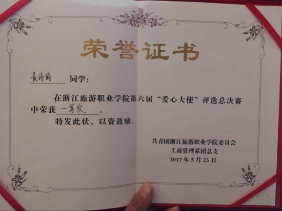 水利系学子参加浙江旅游职业学院第六届“爱心大使”活动总决赛荣获一等奖