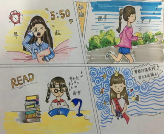 心理漫画即用漫画的形式表达生活、学习等活动中产生的心理问题、心理困惑、心理感悟等心理活动。同学们踊跃参与,创作了以正面描绘、讽刺、滑稽等多种形式呈现的生动活泼、通俗易懂、个性鲜明的心理漫画作品。本次“梦想”为主题的原创四格心理漫画比赛收到作品60余件,评出一等奖作品3件,二等奖作品4件,三等奖作品5件。