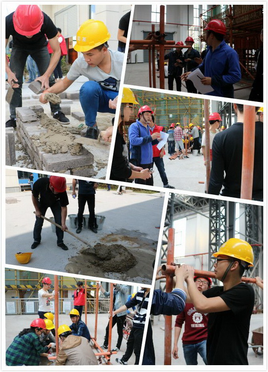 4月17日,建工系在新建成的土木实训中心成功举办了搭脚手架、砌墙等技能大比武活动。