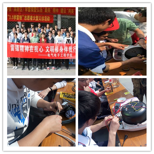 当天清晨,同学们由学校出发,经过了3个小时的车程,顺利到达机电职院会合。两校同学走进社区,迅速布置场地,以热情的笑容、娴熟的维修技术为当地居民开展服务。基础部同学负责记录,技术部同学负责维修,后勤部同学负责物品管理,活动有条不紊地进行。两校同学共同合作配合默契,展示了良好的合作精神。夕阳西下,看着一件件家电(如电磁炉、收音机、电水壶、吹风机等)在同学们的手中重获“新生”,同学们脸上露出欣喜的笑容,维修成功率高达九成以上,围观的人们纷纷伸出了大拇指。在这特殊的日子里,电力1502班同学们发挥自身的专业技能优势,每个人都用自己微笑来感动着他人,以自己行动来展现出自我的价值,这也充分展现了同学们特有的精、气、神。