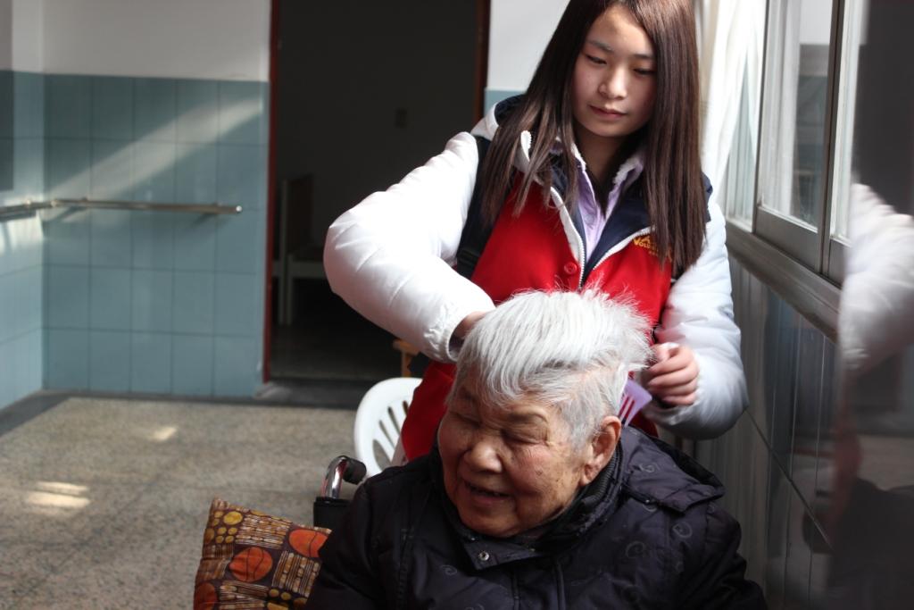 学生们为老人义务打扫卫生,和老人们谈心交流,给他们讲解学校里的趣事,听老人讲那过去的革命、生活。有的在房间倾听老人回忆过去,有的陪老人下棋、打牌,有的帮忙洗头、拎暖水壶,有的则和他们展开了对现在生活的讨论,既使老人暂别寂寞,也让自己收益良多。最后,全体学生为老人合唱了“感恩之心”,活动在融洽的气氛中结束。