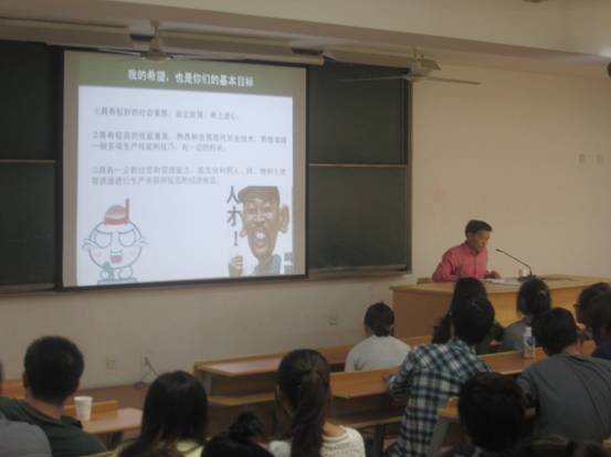 胡总经理首先向新生们简要介绍了引飞果业的基本情况,并与大家分享了其在创业过程中的人生感悟,即做人做事:第一要真实,第二要坚强,第三不做逃兵;同时针对新生们对涉农专业的迷茫与困惑,胡总经理以现身说法告诉大家:农业是一个朝阳产业,设施农业是现代农业的发展方向,各级政府为涉农人才提供了一个广阔的平台,能否利用好这个平台,充分施展自己的才能,专业知识、经验以及心态很重要;现代农业需要的人才必须具备的素质是:有文化,懂技术,会经营;胡总经理勉励大家积极投身到农业产业中去,让心灵起舞,让梦想高飞,最终实现人生价值。