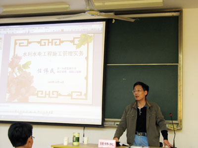 浙一水建集团公司副总经理任伟民讲授“水利水电工程施工管理实务”