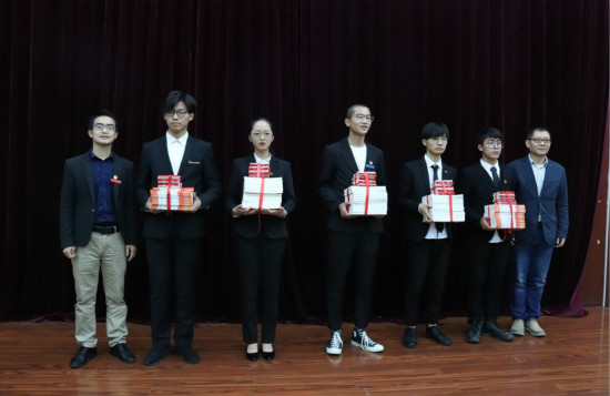 随后,举行了2018年学院团学干部干事培训开班仪式,团委副书记傅鑫杰宣读了《关于举办2018年团学干部干事培训通知》文件,对培训工作进行了安排。活动现场,学院领导为第五期“翔宇”班颁发了班徽,为2018级团支部发放了《团支部工作实务》、《团章》等培训用书。