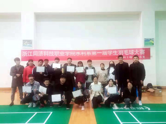 经过激烈的角逐,水利系第一届“水利杯”羽毛球赛男单冠、亚、季军分别是水利1704郑志昊、水管1701严寒、水利1802林浩;女单冠、亚、季军分别是水土1801过雪函、水土1802方园、水工1801朱思维。最后,获奖选手合影留念。