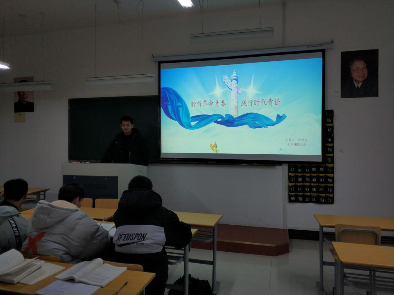 12月机电系“青年大学习”第二期活动主题是“聆听革命青春,践行时代责任”。各个团支部在11月以主题班会为主的学习形式上,开拓创新,通过观看伟人影片、阅读伟人传记、学习网上团课、开展诗歌朗诵会、团辅讨论等丰富多彩的形式,聆听伟人青春故事,学习先烈奉献精神,进一步明确和践行自身的时代责任。