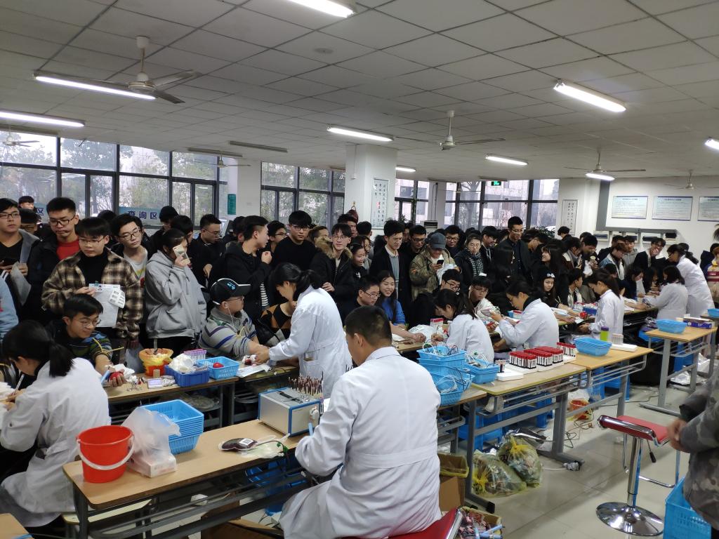 生命呼唤血液,爱心需要奉献。在献血活动正式开始前,就已经有学生早早来到事务中心等待献血,采集登记处很快排成了一条长龙。在医护工作人员和青年志愿者的协助下,填表、化验、等候、抽血、休息,一切井然有序。第一次献血的同学,不免有些紧张,但在医务人员温馨的安慰和指引下,逐渐放松了心态。其中也不乏参加过好几次无偿献血的,听说本次活动后,便又一次踊跃参与其中。在献血后,同学们都收到了献血证以及采血点准备的牛奶饼干等补给物。谈及参与无偿献血这项光荣的事业时,同学们都为自己的行动能给需要的人提供帮助、挽救更多的生命而感到高兴。