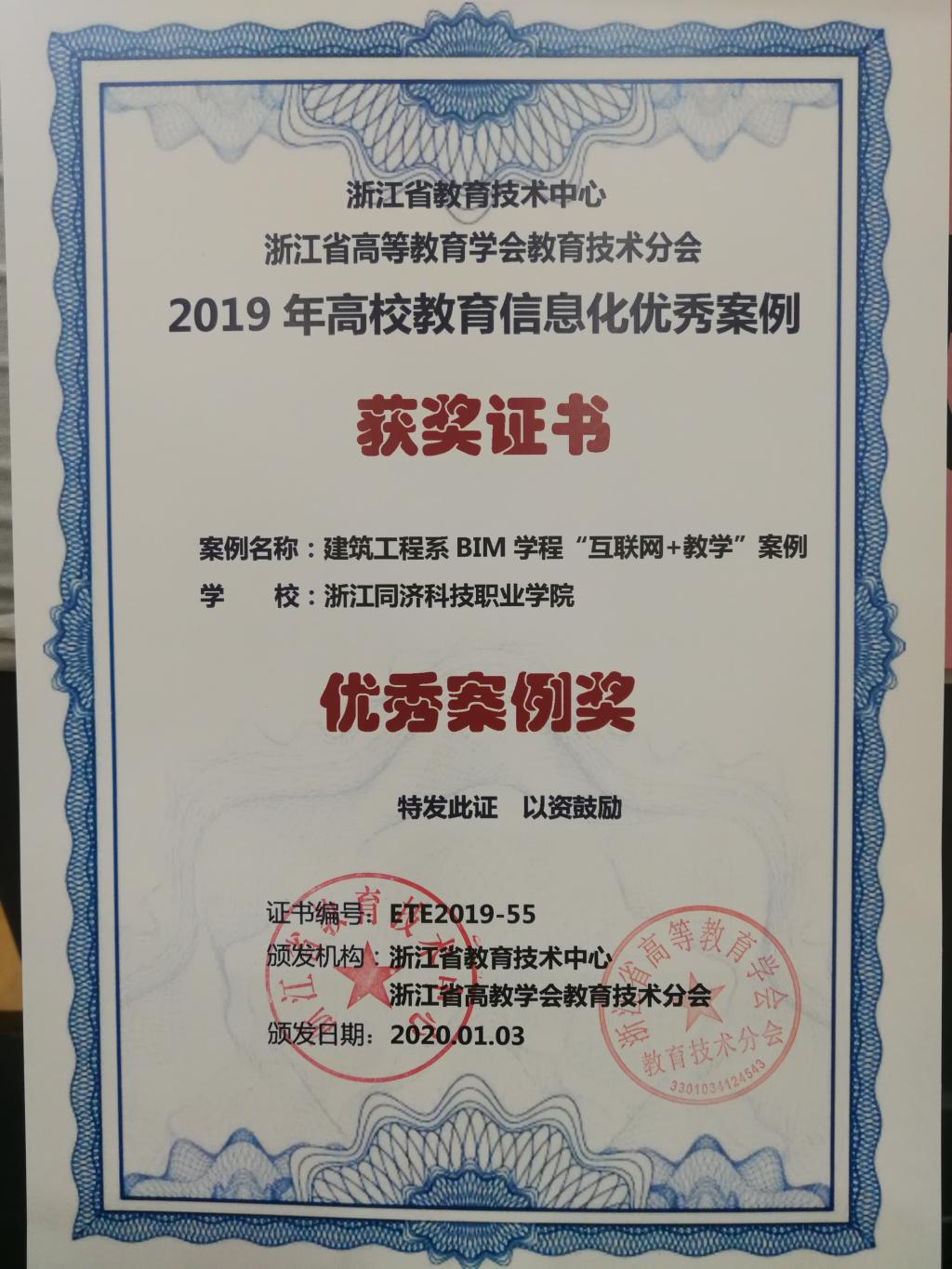2020年1月2至3日,由浙江省高教学会教育技术分会主办、浙江农林大学承办的浙江省高教学会教育技术分会2019年年会在浙江农林大学召开。我院建筑工程系BIM学程教学团队负责的BIM学程“互联网+教学”案例获得2019年浙江省高校信息化教学优秀案例。