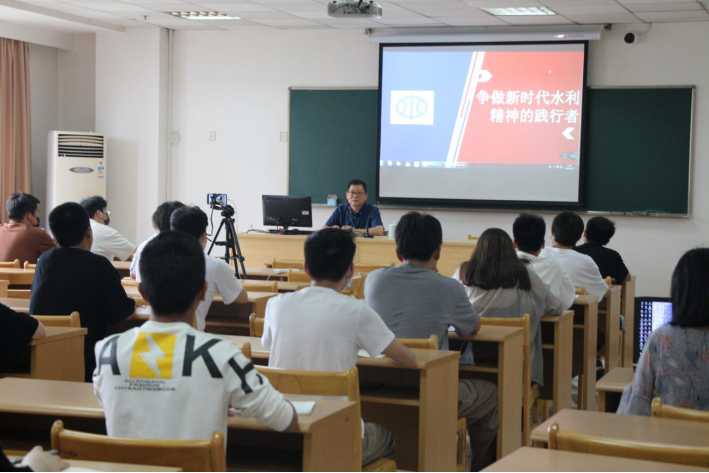 5月27日下午,学院党委副书记、副院长吴宏平为水利系入党积极分子讲授主题思政课:争做新时代水利精神的践行者。本次主题思政课采取线下课堂+线上直播的方式进行。水利系党总支副书记王志远、组织员及143名入党积极分子参加了此次学习。