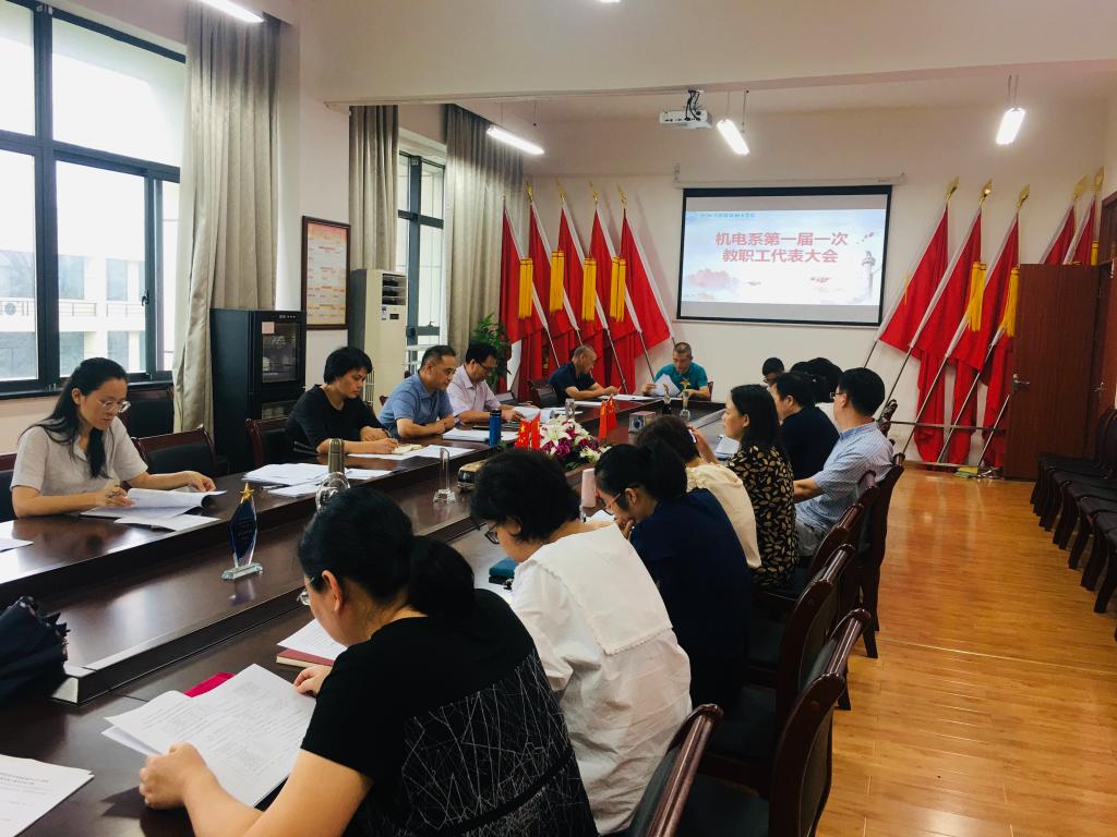 7月10日下午,机电系在钱江楼513召开一届一次教职工代表暨工会代表大会。系领导班子成员及全体教代会代表参加会议。大会由系办公室主任石杨主持。
