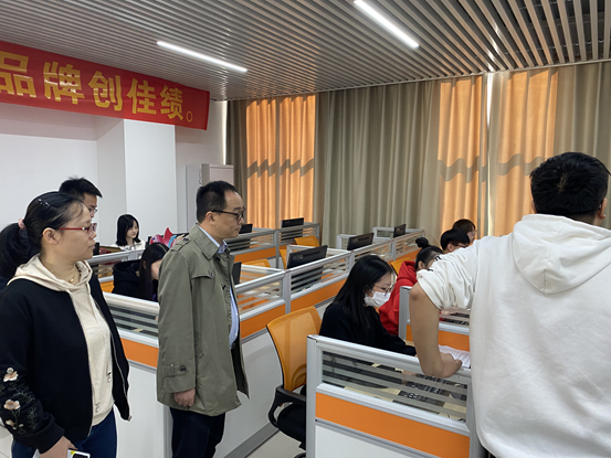 11月12日上午,姜伟副院长在工管系主任景秀眉、系党总支书记周恺等一行的陪同下来到“双11”实训现场看望慰问学生。他向同学们询问了工作内容和工作感受,勉励同学们要把握这次难得的实训机会,把课堂上所学的知识运用到实际工作中去,服务好每一个客户,为将来的工作打下良好的基础。