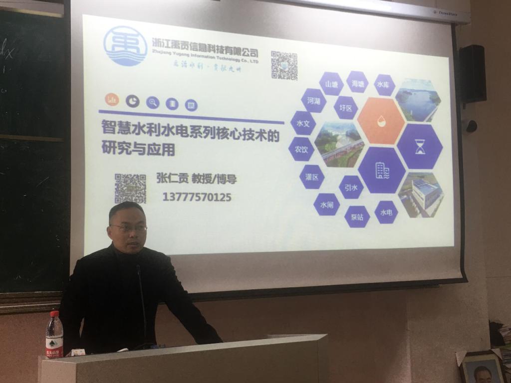 12月9日下午,机电系邀请浙江禹贡信息科技有限公司董事长张仁贡教授来校作了名为《智慧水利水电系列核心的研究与应用》的讲座。讲座由机电系主任金永琪主持。机电系全体教职工参加。
