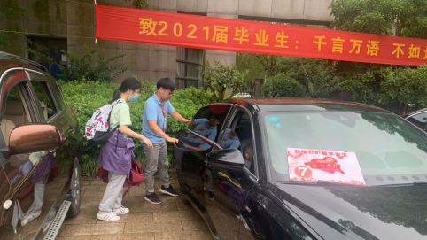 “千言万语,不如送你”。三年前,后勤车队的师傅们从车站将求知若渴的莘莘学子迎接到校,开启求学之路;三年后,后勤车队的师傅们将学业有成的学子们送到车站踏上新的征程。除了校车接送,今年在送别毕业生的路上又多了一群忙碌的身影,那是我校“爱心车队”的成员,与以往不同的是,今年后勤将爱心车队的组建范围扩大到了整个学校的教职工,并且得到了老师们的支持,这些爱心车主们帮学生把行李搬上汽车,送往汽车站、火车站、飞机场,爱心接力一程又一程。