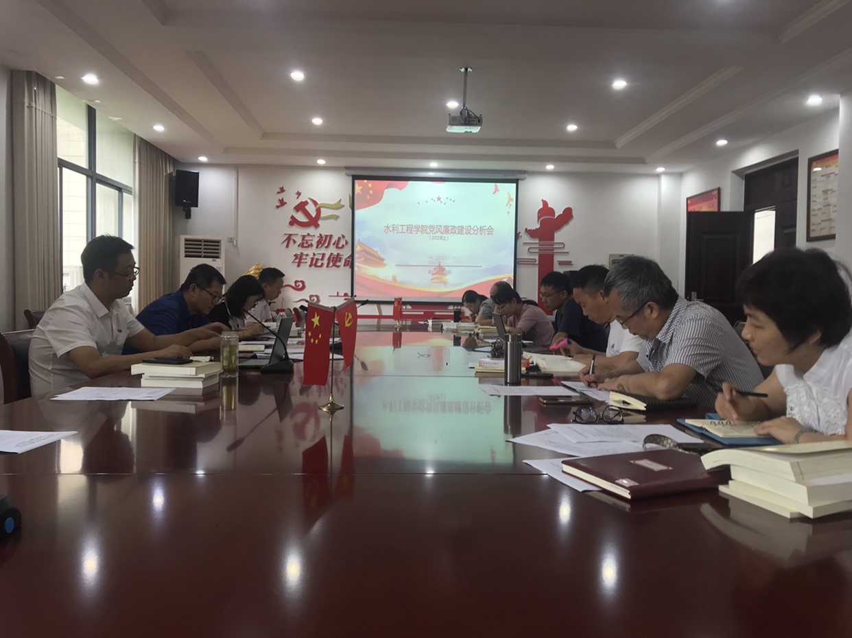 为贯彻落实全面从严治党,扎实推进学院党风廉政建设,6月30日,水利工程学院党总支召开上半年党风廉政建设分析会。学校党委副书记、副校长吴宏平应邀到会指导。学院党总支书记叶乐、院长刘进宝、副书记石杨、副院长金斌斌以及党总支委员、各党支部书记、各专业部主任、实训室主任参加会议。会议由学院党总支副书记石杨主持。