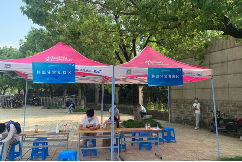 在疫情防控的当下,后勤医务人员在南北校门设立了体温异常复检区,确保防疫工作的开展,筑牢防控的大门。同时还安排了疫情防控值班应急车辆,服务师生的需求。