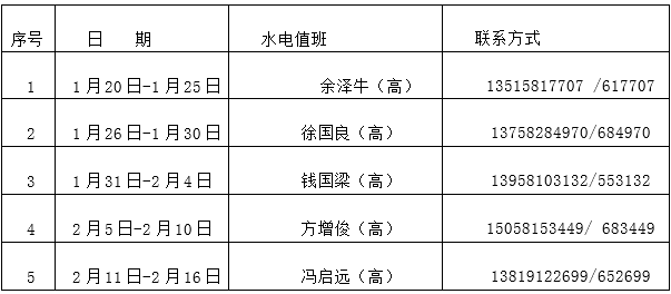 水电维修值班电话: 83863099 高配值班电话: 83863014