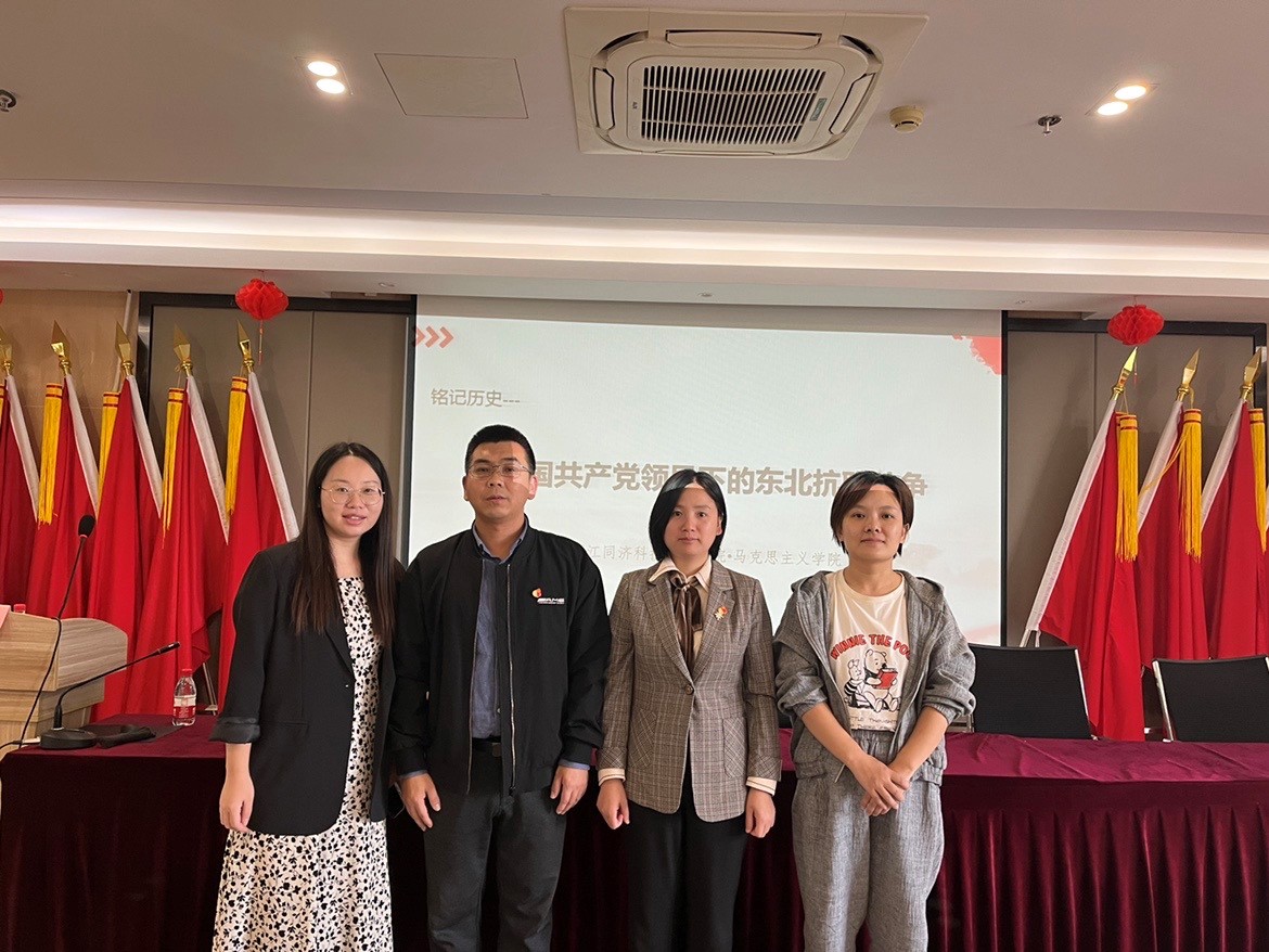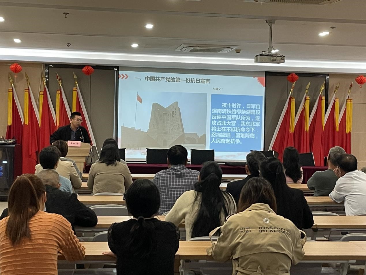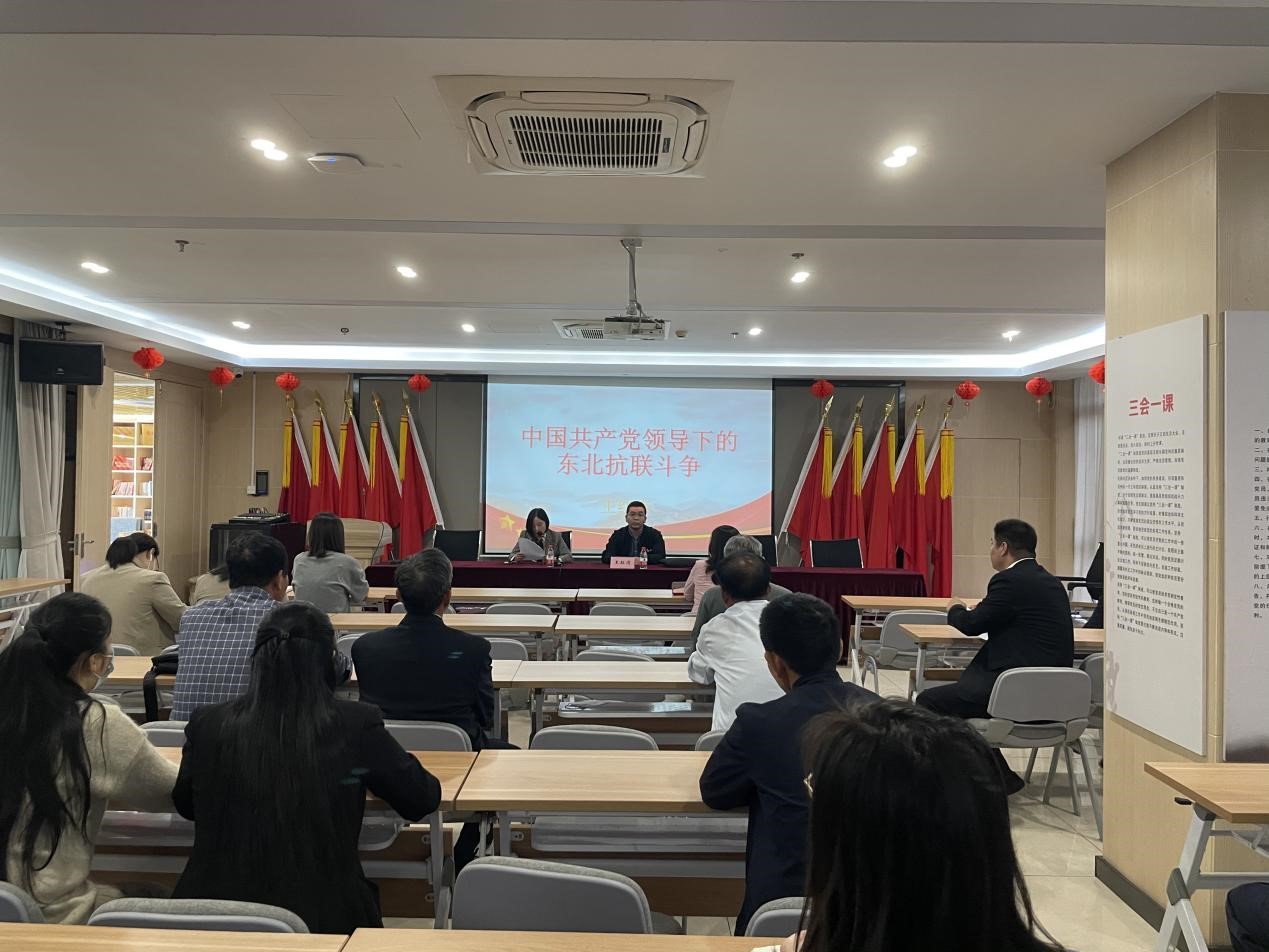 为充分发挥社区地域优势,融合学院教师资源,弘扬红色文化,营造浓厚学习氛围,努力打造“同创共建,学社联动”的社区发展新格局。我院于今年7月与水博社区签约共建大学生思政实践基地。为深入合作交流,凝聚思想共识,10月24日下午,我院思想道德与法治教研室赴水博社区开展党课宣讲活动。思想道德与法治教研室主任王红涛作了“中国共产党领导下的东北抗联斗争”主题报告。水博社区党支部书记胡指红主持会议。