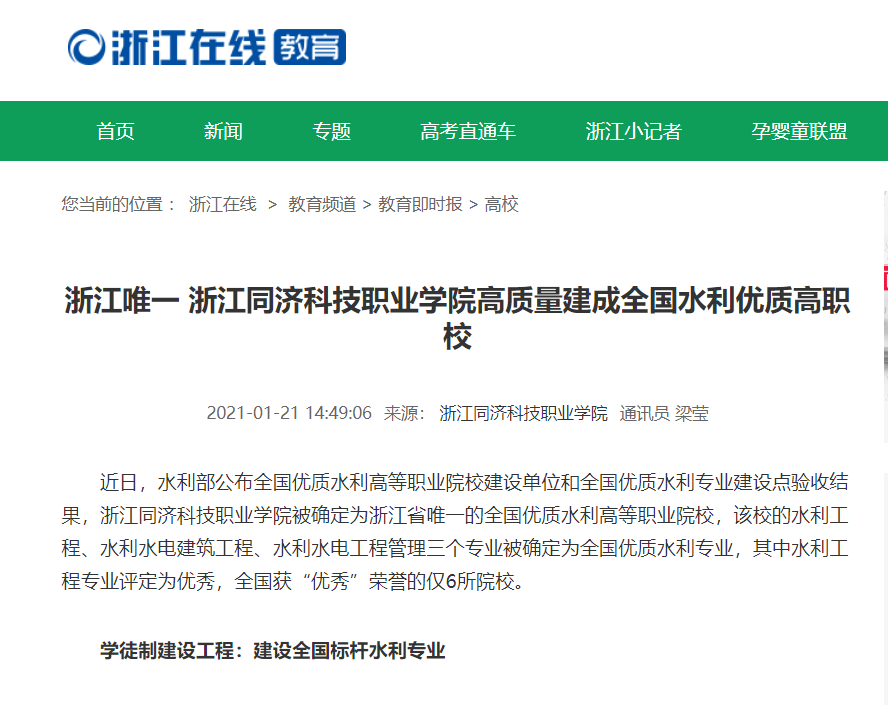 【媒体关注】中新网报道我校水利技术技能人才培养成绩
